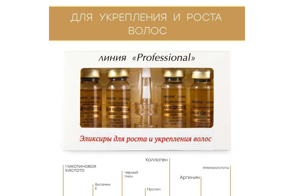 Гель для укрепления волос «HAIRNUTRITION» представляет собой светлую гелеобразную массу желтоватого оттенка с лёгким травяным запахом. Он содержит активатор, обогащённый ионами меди, яблочный уксус, никотиновую кислоту, полимер гуаровую камедь, экстракт корней морозника на масле виноградных косточек, чёрный тмин, кору дуба, траву хвоща полевого, глицерин, аминокислоты, коллаген, натрий двууглекислый (сода питьевая), витамин Е, нипагин и нипазол.
