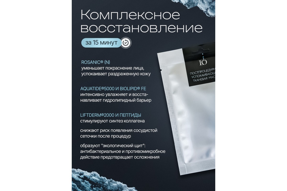 Постпроцедурная маска LO – это инновационное SOS-средство для моментального успокоения и восстановления кожи после косметических процедур. Разработанная на основе передовых активных комплексов, маска создает охлаждающий и противовоспалительный эффект, который виден сразу после применения.